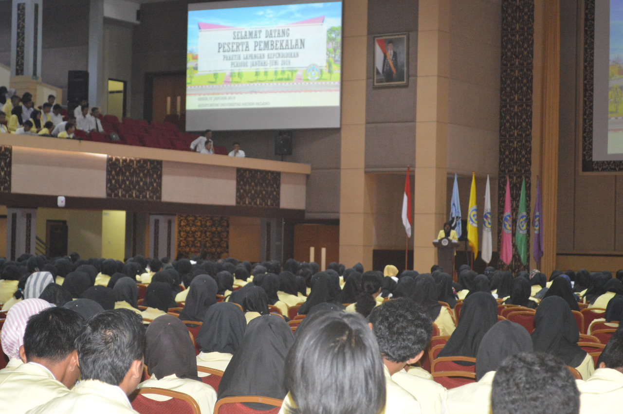 JURNAL SUMBAR | Padang – Sebanyak 1500-an mahasiswa peserta program Praktik Lapangan Kependidikan (PLK) Universitas Negeri Padang mengikuti pembekalan, yang berlangsung seharian penuh di Auditoirum UNP, Senin (7/1). Pembekalan PLK periode Januari hingga Juni 2019 mendatang dibuka Rektor UNP, Prof Ganefri.