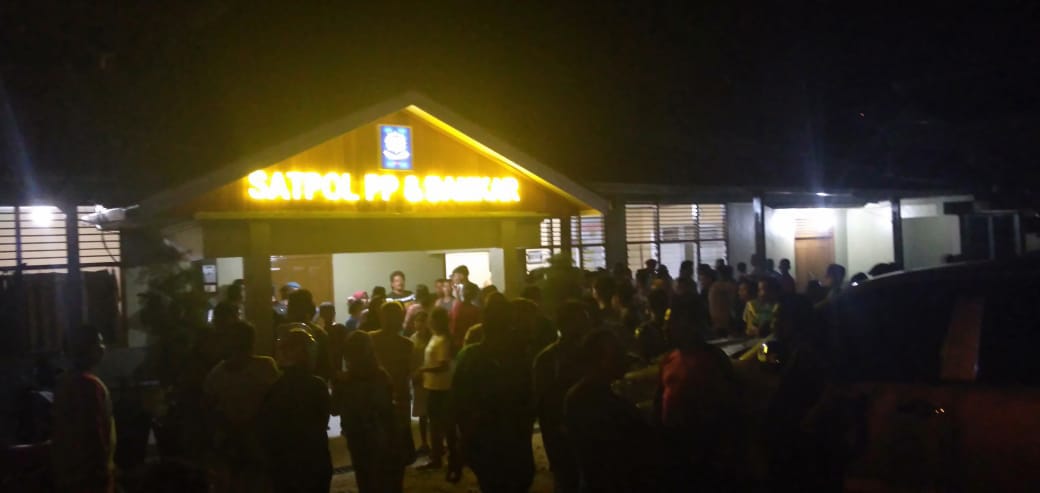 JURNALSUMBAR | Pesisir Selatan – Kerumunan warga padati Kantor Satuan Pol PP-Damkar Kabupaten Pesisir Selatan, Sumatera Barat yang mengamankan dua pasang kekasih di malam Valentine, Kamis 14 Februari 2019.