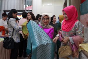 Didampingi Gubernur Sumatera Irwan Prayitno, Ketua Dekranasda Sumbar Ny. Nevi Irwan Prayitno, Bupati Tanah Datar Irdinansyah Tarmizi, Ketua Dekranasda Tanah Ny. Emi Irdinansyah dan tamu undangan lainnya, Ibu Mufidah meninjau stand-stand hasil produk IKM Tanah Datar yang memamerkan produk kerajinan, tenun, songket, sulaman, batik, kuliner, sovenir dan lainnya.