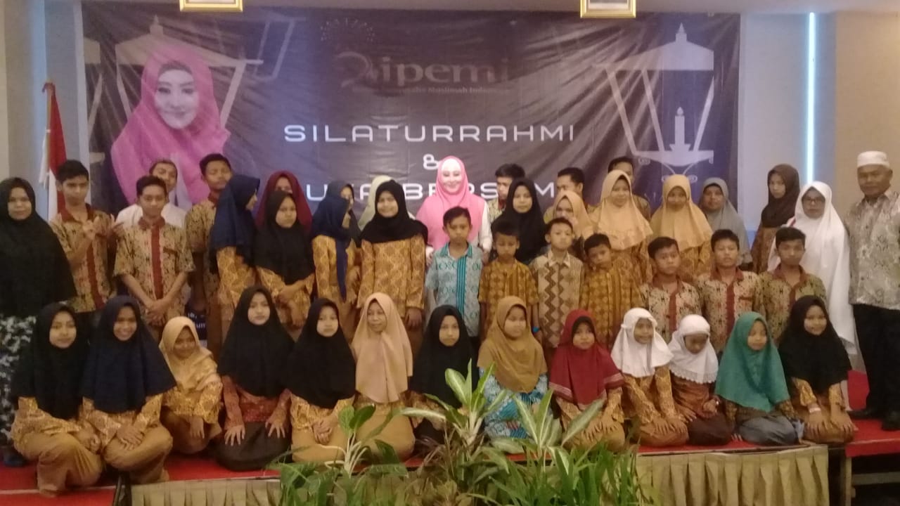 Serangkaian acara menjelang berbuka, Ketua IPEMI Sumatera Barat Lisda Hendrajoni bersama anak-anak panti asuhan yatim piatu memberikan sedikit oleh-oleh sebelum waktu berbuka puasa tiba.