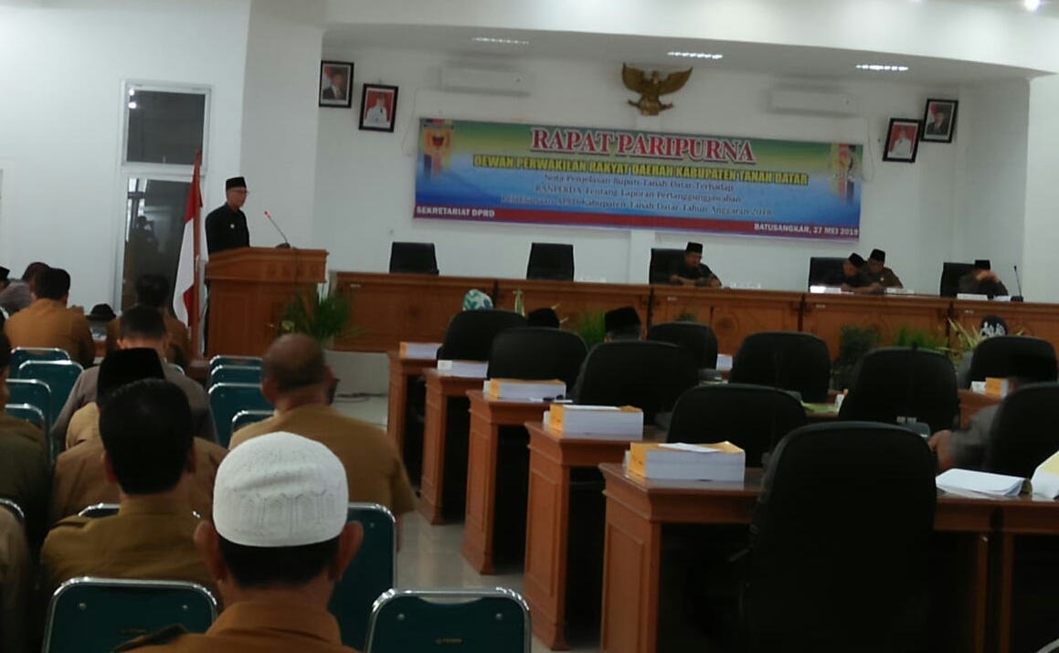 JURNAL SUMBAR | Batusangkar – Rapat paripurna tentang nota penjelasan Bupati Tanah Datar terhadap Ranperda laporan pertanggungjawaban pelaksanaan Anggaran Pendapatan Belanja Daerah (APBD) Kabupaten Tanah Datar tahun 2018 digelar DPRD (Dewan Perwakilan Rakyat Daerah) Tanah Datar.