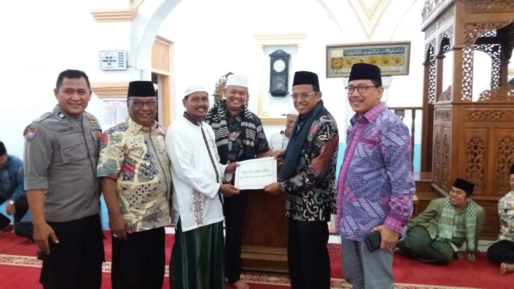 Pada Minggu (12/5) malam itu Rektor UNP, Prof Ganefri memberikan bantuan Pemerintah Provinsi sebanyak Rp20 Juta kepada pengurus Masjid Raya Muhsinin Jorong Mungka Tangah, kabupaten Lima Puluh Kota. Turut hadir dalam rombongan Rektor UNP itu Wakil Rektor 2, Syahril PhD, Wakil Dekan 2 FIK UNP, Alnedral beserta pimpinan OPD Pemprov Sumbar lainnya. (Humas UNP/Agusmardi)