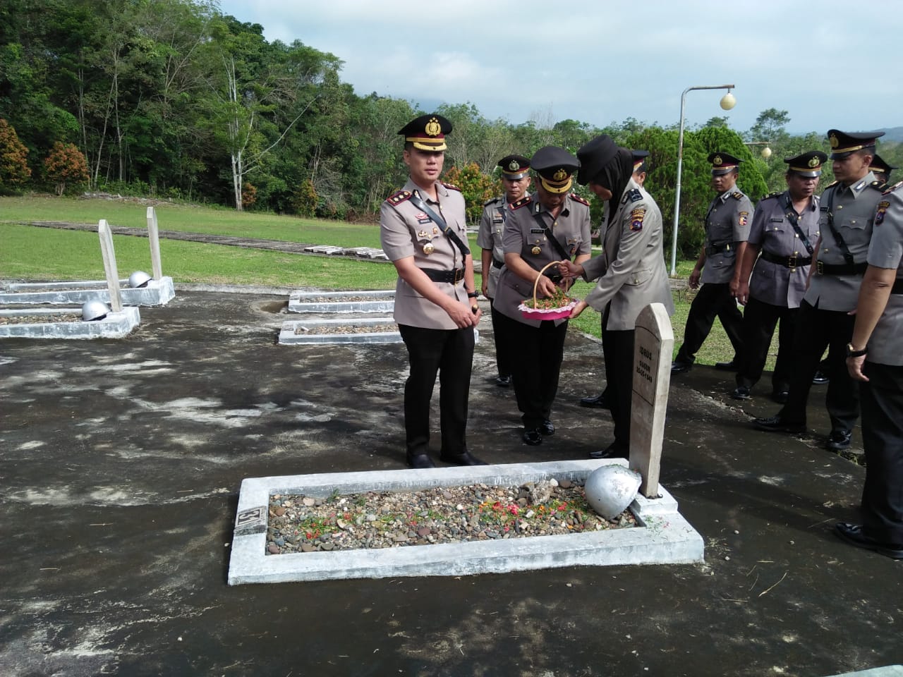 JURNAL SUMBAR | Sijunjung – Jelang Hari Ulang Tahun (HUT) Bhayangkara ke 73, Kepolisian Resor (Polres) Sijunjung melakukan ziarah dan tabur bunga ke Taman Makam Pahlawan Puspa Bangsa (TMP PB) pada Kamis (27/6/2019), di Nagari Pematang Panjang, Kecamatan Sijunjung, Kabupaten Sijunjung.