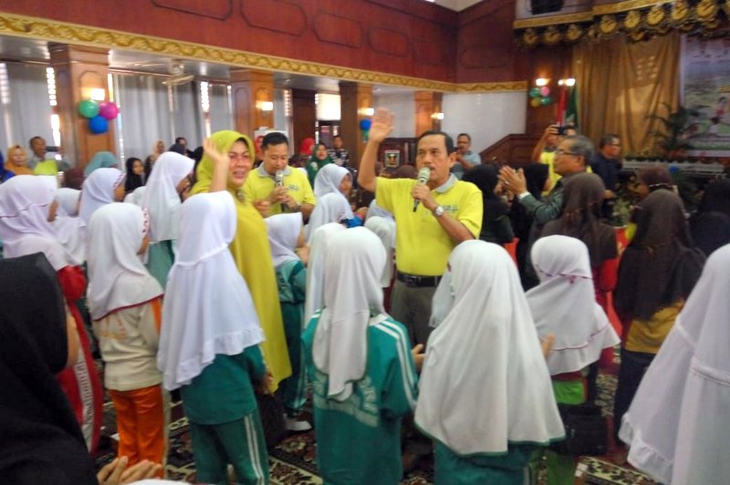 JURNAL SUMBAR | Sijunjung – Bupati Sijunjung, Yuswir Arifin dan Ketua Lembaga Koordinasi Kesejahteraan Sosial (LKKS), Endra Yuswir Arifin punya cara tersendiri dalam memperingati Hari Anak Nasional (HAN) tingkat Kabupaten Sijunjung, Kamis (27/6/2019).