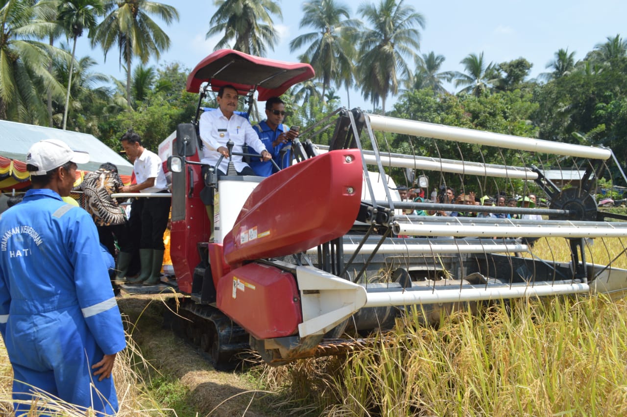 JURNAL SUMBAR | Sijunjung – Bupati Sijunjung Yuswir Arifin lakukan Fiel Day panen padi galur mutan harapan varietas lampai kuniang kerjasama Dinas Pertanian Kabupaten Sijunjung dengan pusat aplikasi isotop dan radiasi Badan Tenaga Nuklir Nasional (Batan) di Kelompok Tani (Keltan) Taruko, Nagari Tanjuang, Kecamatan Koto VII, pada Rabu (31/7/2019).