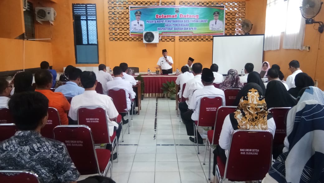 Bupati Sijunjung H. Yuswir Arifin dalam sambutannya menyebutkan, hakekat kegiatan rapat pemutakhiran data pada intinya, yakni suatu upaya untuk mengetahui sampai sejauh-mana langkah-langkah yang telah diambil oleh pimpinan perangkat daerah sesuai saran atas temuan hasil pemeriksaan inspektorat daerah.