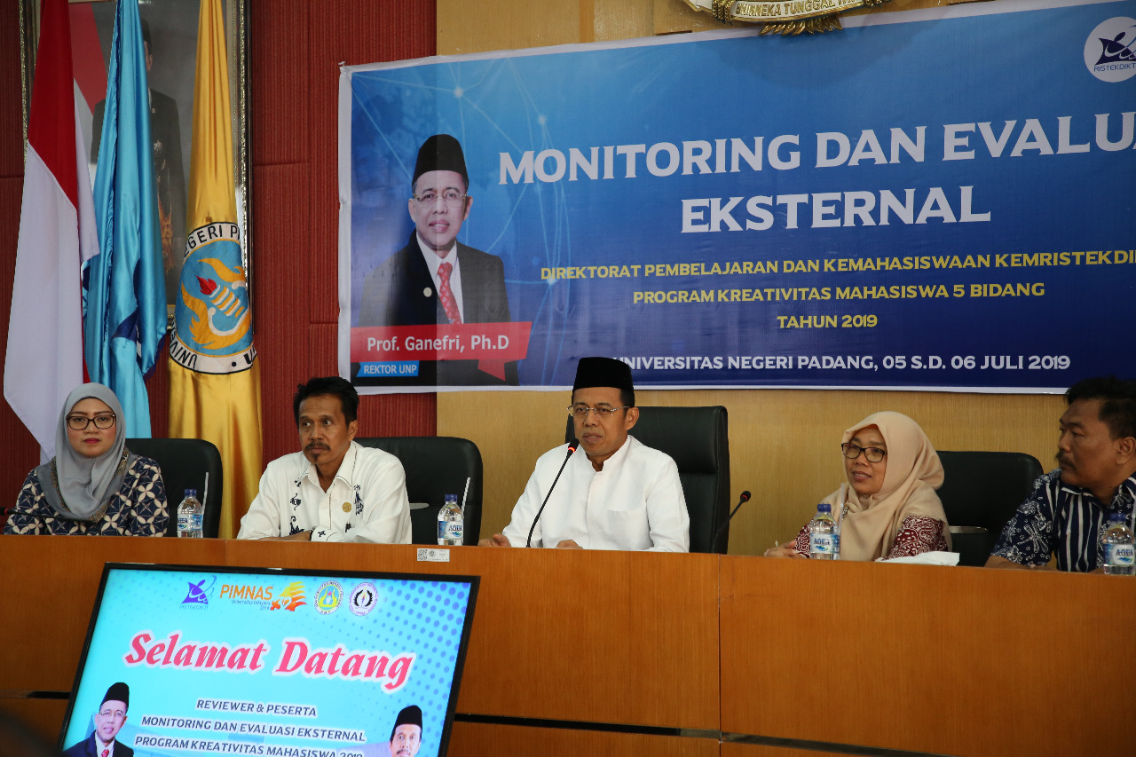 Menurut Prof Ganefri di pilihnya UNP sebagai tuan rumah untuk pelaksanaan monitoring dan evaluasi ekternal Program Kreativitas Mahasiwa (PKM) merupakan salah satu upaya untuk mendukung segala kegiatan dan kreativitas mahasiswa.