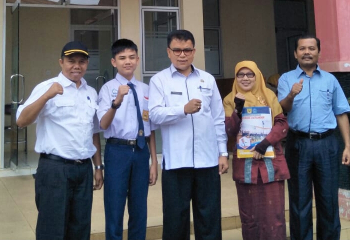 Ihsanul Fikri Alfarizel dilepas Kadis Dikbud Tanah Datar Riswandi bersama Kabid PSMP Agusli, guru pembimbing Lofmifo Yuswirna dan Yusrizal Dt Makhudun dari SMP N 5 di kantor Dinas Dikbud Pagaruyung, Rabu (24/7/).