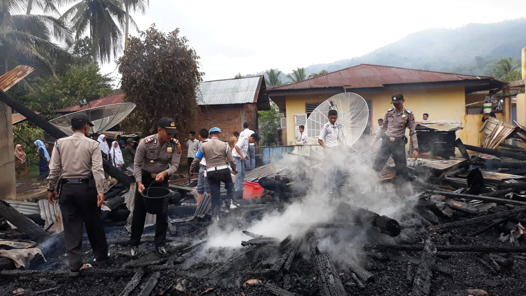 “Apinya masih ada, lihat saja asapnya masih mengupal. Untuk itu kami dan dibantu pelajar disini membersihkan puing-puing sisa kebakaran tersebut”