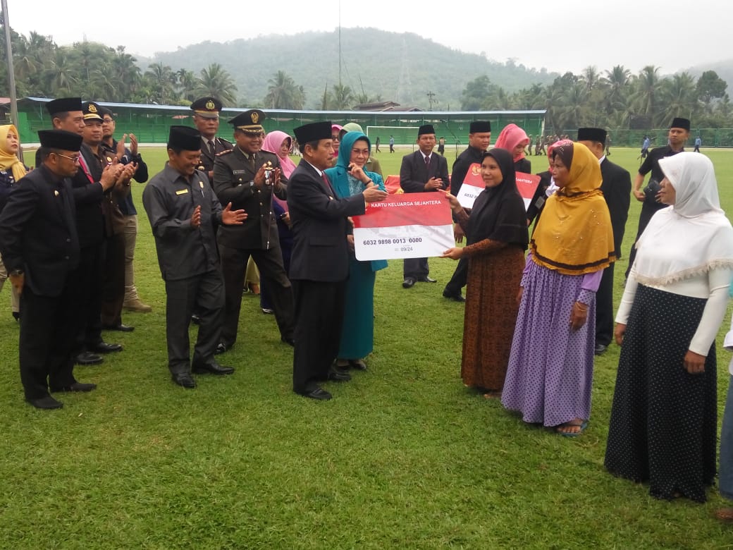 Penyerahan kartu BPNT tersebut dilaksanakan dilapangan Prof.M.Yamin Muaro Sijunjung, Minggu (10/11/2019).