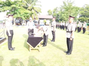 JURNAL SUMBAR | Sijunjung – Kapolres Sijunjung, Sumatera Barat, AKBP Driharto, SIK, pada Jumat (29/11/2019) pimpin prosesi upacara serahterima jabatan (Sertijab) Kapolsek Lubuktarok dan Kasat Sabhara di Halaman Mapolres Sijunjung dengan perwira upacara AKP Syofyan Efendi dan komandan upacara Ipda Irwan Doni.