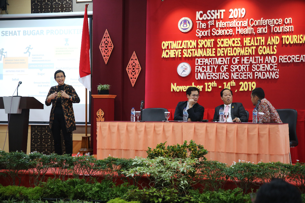 ICoSSHT yang pertama di gelar Fakultas Ilmu Keolahragaan (FIK) itu berlangsung selama dua hari, Rabu dan Kamis (13-14/11) dengan menghadirkan lima nara sumber dari dalam dan luar negeri. Mereka adalah drg Kartini Rustandi dari Kemenkes RI, Prof Dr Jeong Howon dari Kyunpook National University, South Korea, Assoc Prof Dr Nimanee dari Thammasat University, Assoc Prof Dr Selia Khoo dari Universitas Malaya Malaysia dan Prof Gusril dari UNP.