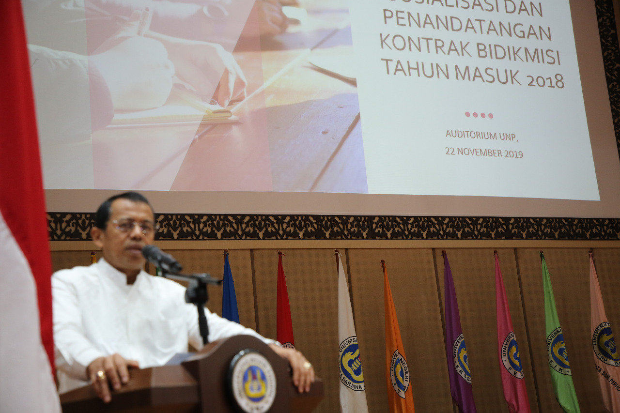 “Supaya mahasiswa UNP mempunyai kesempatan yang sama dengan bangsa lainnya, seperti lapangan kerja di Asia. Maka, universitas mensyaratkan tes Toefel bagi wisudawan UNP,” kata Ganefri dalam sambutanya pada sosialisasi dan penandatanganan kontra bidimisi 2018, Jumat (22/11).