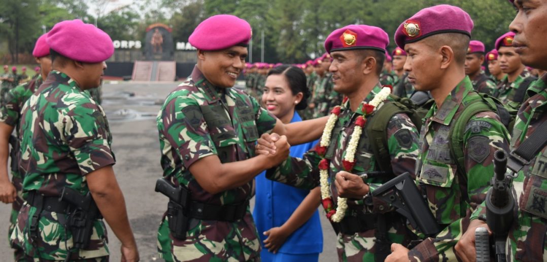 JURNAL SUMBAR | Jakarta – Wakil Komandan (Wadan) Pasmar 1 Kolonel Marinir Muhammad Nadir mewakili Komandan Pasmar 1 Brigadir Jenderal TNI (Mar) Nur Alamsyah, M.Tr (Han)., menyambut kedatangan personel Satgas Pam Papua dengan Komandan Satgas Letkol Mar Romanimbun Butarbutar, M.Tr. Hanla yang telah selesai melaksanakan Pengamanan Unjuk Rasa (Pam Unras) di wilayah Papua, bertempat di Lapangan Apel Brigif 1 Mar Kesatrian Marinir Hartono Cilandak, Jakarta Selatan, Rabu (13/11/2019).