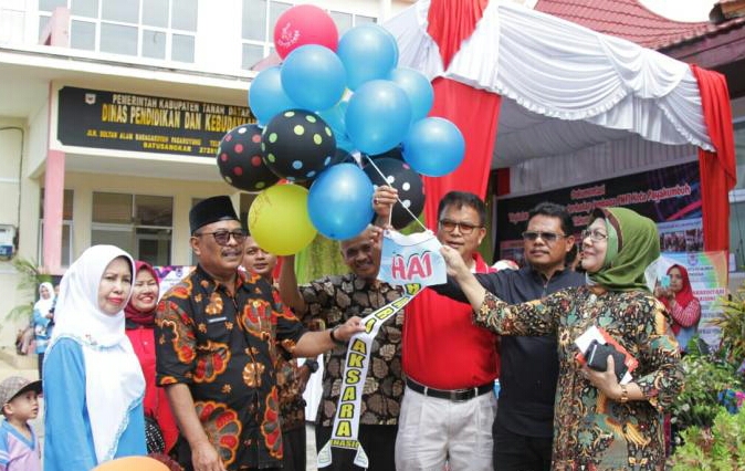 JURNAL SUMBAR | Batusangkar – Hari Aksara Internasional (HAI) dan Hari Anak Nasional (HAN) Tingkat Kabupaten Tanah Datar dan Kota Payakumbuh, Kamis (28/11) yang dipusatkan di halaman Kantor Dinas Pendidikan Tanah Datar di Pagaruyung dibuka bupati diwakili Staf Ahli Bupati Bidang Pemerintahan, Hukum dan Politik, Nuryeddisman.