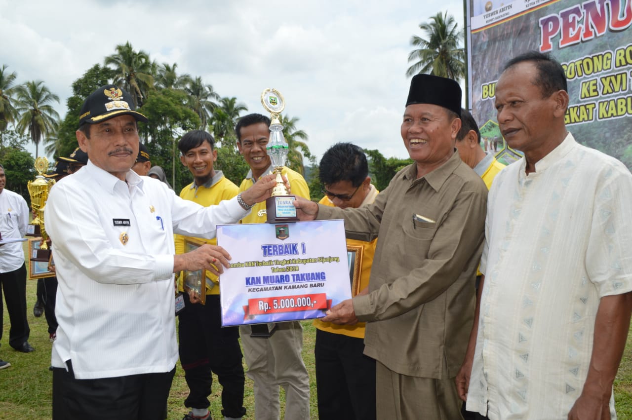 Hadiah tersebut diserahkan langsung Bupati Sijunjung, H. Yuswir Arifin yang diterima Ketua KAN Muaro Takuang, Parijal J. Dt. Bagindo Sutan, SE pada saat Penutupan BBGRM ke XVI tingkat Kabupaten Sijunjung Tahun 2019 di Lapangan Bolakaki Padang Sibusuak, pads Jumat (13/12/2019).