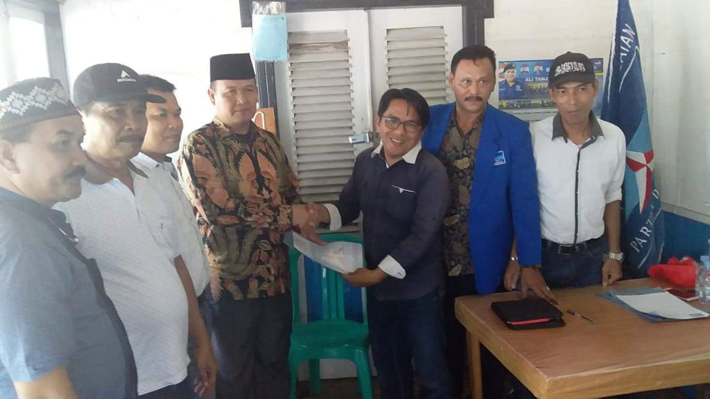 Ikut saat penyerahan berkas, Mantan Anggota DPRD Pessel Defri Joni, Datuk H.Drs. Jasril Jabar, Khairul Samsi ( tokoh masyarakat), Elfinas ( tokoh masyarakat) dan Bendahara DPC. Partai Demokrat Kota Padang Asril Muis.(RD)