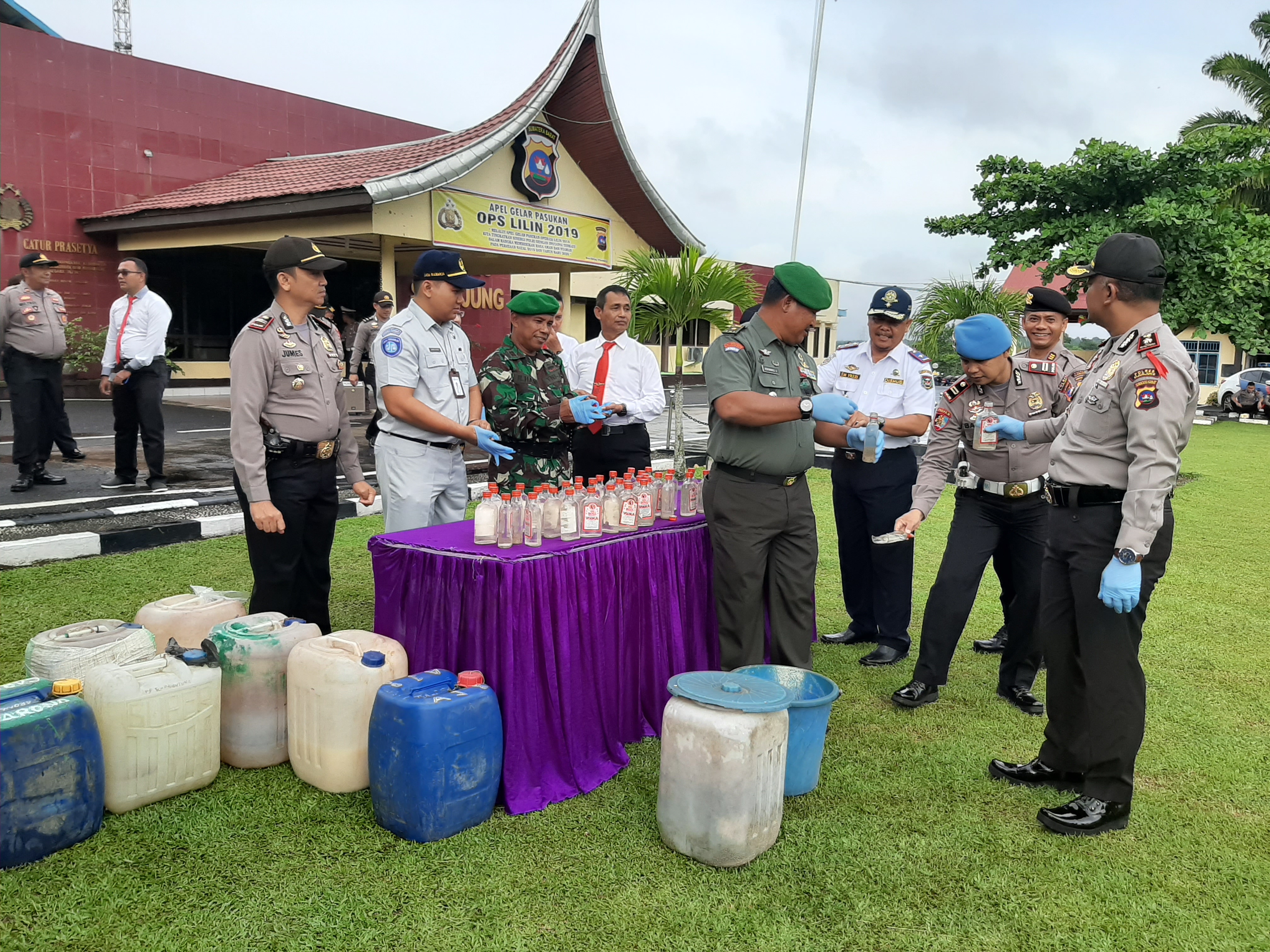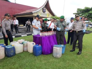 JURNAL SUMBAR | Sijunjung – Jelang penutupan akhir tahun 2019, jajaran Polres Sijunjung, Sumatera Barat, memusnahkan ratusan botol minuman keras (Miras) jenis Vodka dan ratusan liter Miras jenis Tuak hasil tangkapan dan razia polisi di Sijunjung.