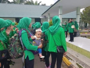 JURNAL SUMBAR | Padang – Bertempat di Mako Yonif 133/Yudha Sakti, pada Rabu (11/12/2019) Komandan Korem (Danrem) 032/Wirabraja Brigjen TNI Kunto Arief Wibowo beserta jajaran staf dan Ketua Koorcab Rem 032 PD I/BB Mia Kunto yang didampingi oleh pengurus Persit Koorcab Rem 032 melakukan pengecekan dan sosialisasi mitigasi kepada Ibu Ibu Persit Yonif 133/YS yang ditinggalkan suaminya melaksanakan Operasi Pamtas RI-Malaysia.