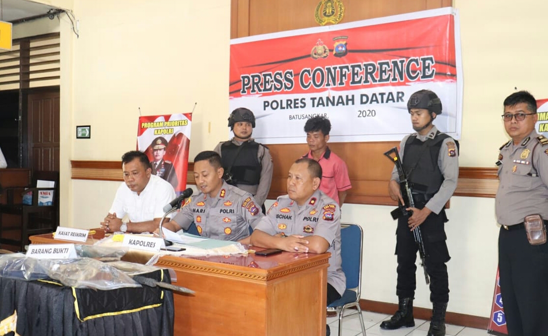 Dalam jumpa pers , Kapolres Tanah Datar AKBP Rokhmad Hari Purnomo mengakui, peristiwa pembunuhan itu terjadi sekitar pukul 09.00 Wib, Minggu (19/1/20) yang dilakukan terduga Anto