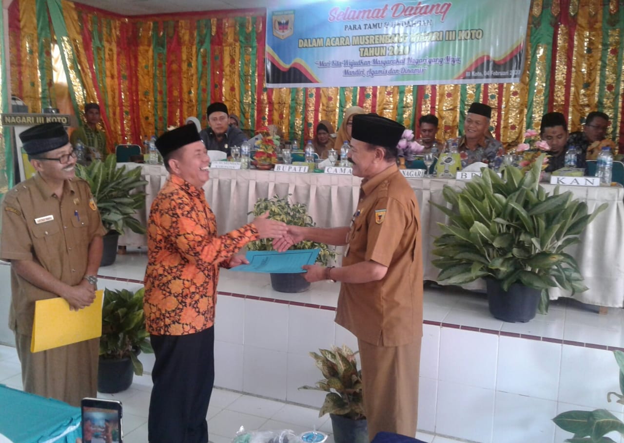 Sementara itu, wali nagari III Kota M Hatta pada kesempatan itu melaporkan penggunaan APB ( Anggaran pendapatan belanja) Nagari III Koto tahun 2019, dan tahun 2020 serta rencana anggaran pembangunan 2021.