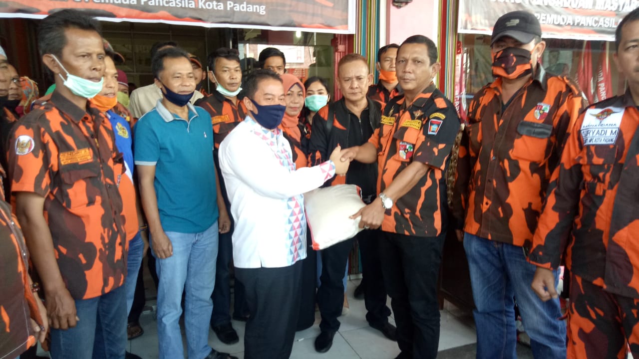 JURNAL SUMBAR | Padang -(APEPI) Asosisasi Pengusaha Emas Permata Indonesia Wilayah Kota Padang, Sumatera Barat, salurkan dua ton beras dan 200 papan telur ayam kepada Organisasi Masyarakat Pemuda Pancasila (Ormas PP) Kota Padang, pada Jumat (17/4/2020).