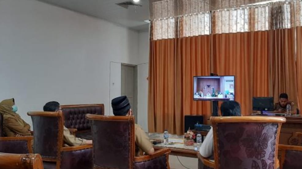 Aktivitas rapat pimpinan daerah dengan Gubernur Sumbar melalui vidcon diikuti Sekretaris Daerah Tanah Datar Irwandi Dt Maruhun Sati, Asisten Pemerintahan dan Kesra Suhermen, Kadis Kesehatan dr. Yesrita Zedrianis, Kasatpol PP Yusnen dan pejabat lain. habede