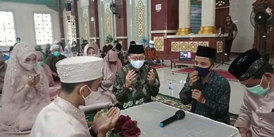 JURNAL SUMBAR | Pesisir Selatan – Bupati Pesisir Selatan Hendrajoni menjadi saksi nikah putri anggota DPRD Provinsi Sumbar Bakri Bakar, SH, dengan putra anak dari Syafran Tamsa. Jumat (19/6/2020) digelar di Masjid Akbar Baiturrahman, Painan, Kecamatan IV Jurai, Kabupaten Pesisir Selatan.