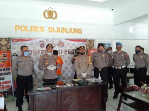 Kapolres Sijunjung memperlihatkan barang bukti