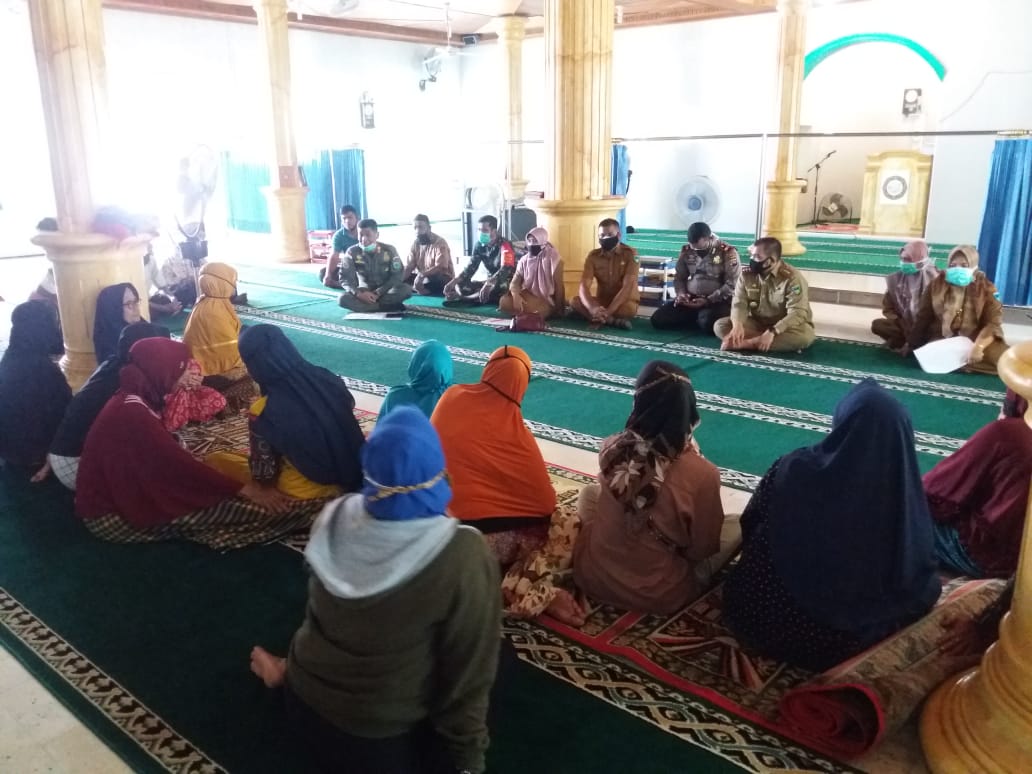 Tim Gugus Tugas Percepatan Penanganan Covid 19 Kabupaten Pesisir Selatan Provinsi Sumatera Barat, bersama Forum Pimpinan Kecamatan IV Nagari Bayang Utara, melakukan pertemuan dengan sejumlah masyarakat Nagari Puluik Puluik, yang diduga kontak dengan pasien positif asal Kota Sungai Penuh Provinsi Jambi di masjid Baiturrahman Puluik Puluik, Senin (22/6/2020).