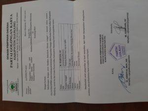 Surat tersebut diserahkan Sekretaris Partai Golkar Sijunjung, Hartani,ST kepada Kantor Kesbangpol & Linmas Kabupaten Sijunjung yang diterima Kasubag TU Kesbangpol dan Linmas Kabupaten Sijunjung Dewi Lusianita, SE,MM.