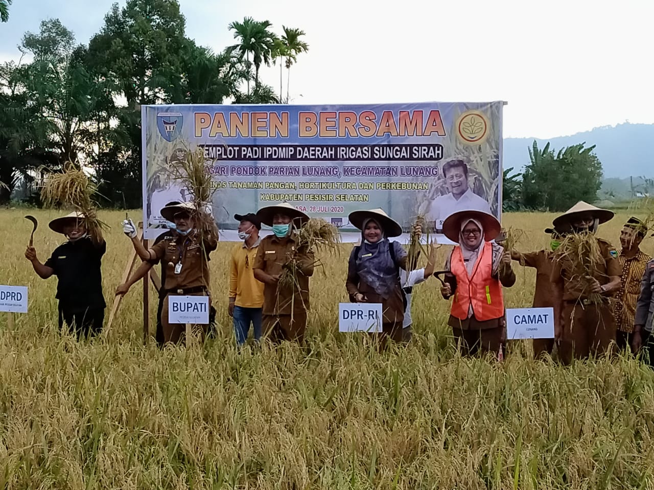 Hadir bersama bupati pada kesempatan itu, Wakil Ketua DPRD Hakimin, Asiaten II, Mimin Riarty Zainul, Kepala Dinas Tanaman Pangan Holtikultura dan Perkebunan, Nuzirwan, serta Camat Lunang Lyonica Ventira, kepala perangkat daerah dan sejumlah undangan lainnya.