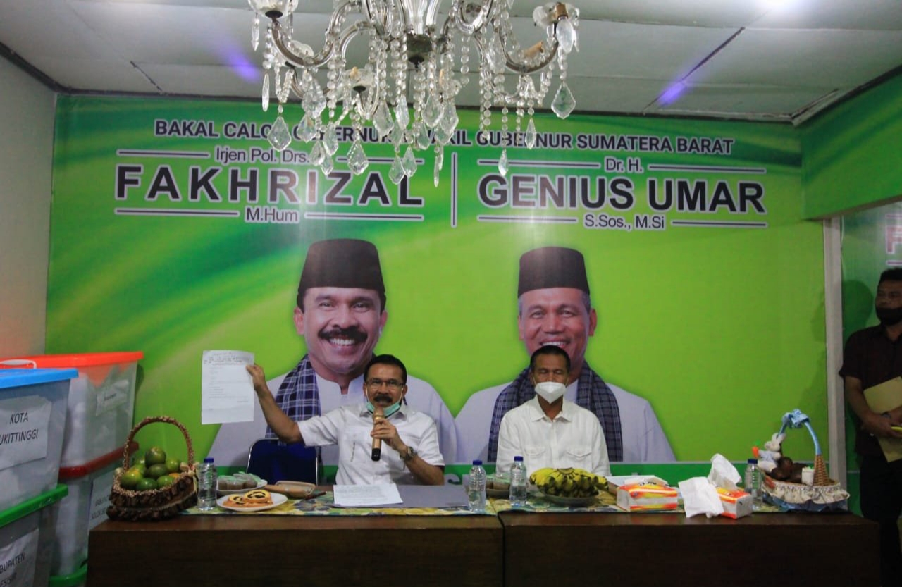 JURNAL SUMBAR | Padang – Tim bakal pasangan calon perseorangan atau independen dalam pemilihan calon gubernur dan wakil gubernur, Fakhrizal-Genius Umar, menyatakan tidak akan menggunakan kesempatan perbaikan verifikasi faktual dukungan ke Komisi Pemilihan Umum (KPU) Sumatra Barat (Sumbar).
