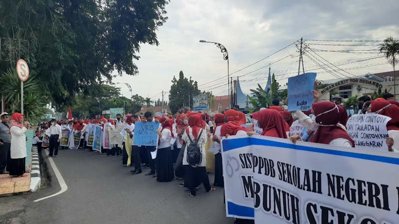 Mereka memprotes kebijakan non zonasi yang diterapkan oleh Dinas Pendidikan (Disdik) Sumbar.