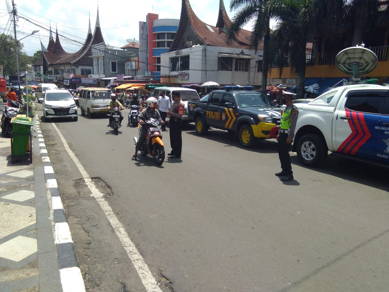 Aktivitas peningkatan himbauan, dan edukasi diimplementasikan di Pasar Batusangkar,dan lokasi wisata Istano Basa Pagaruyung. Kegiatan itu dilakukan merupakan bentuk kepedulian polri dalam menyelamatkan negeri dari pandemi corona.