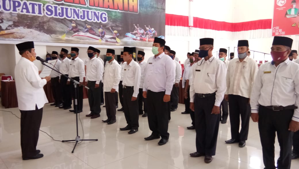 Acara yang berlangsung dengan mengikuti aturan protokol kesehatan Covid-19 ini dihadiri Asiaten I Setdakab, Yenuarita, SH.M.Hum, Kadis PMN, Khamsiardi, SSTP. M.Si, Camat se Kabupaten Sijunjung dan undangan lainnya.
