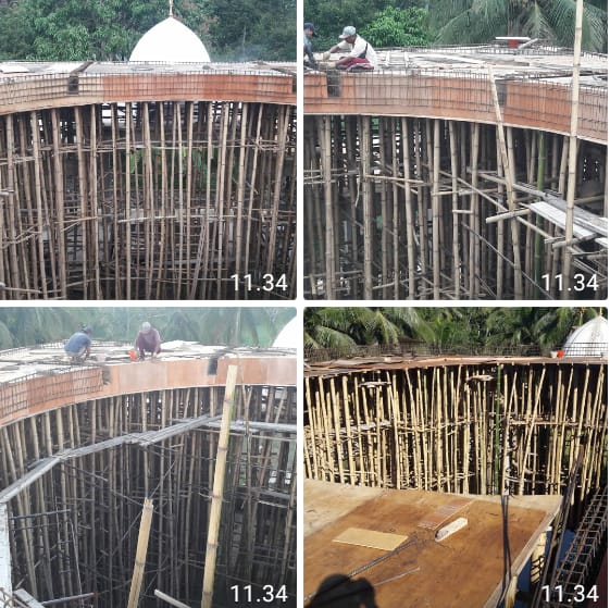 JURNAL SUMBAR | Batusangkar – Pembangunan masjid Nurul Jami’ Patai Padang Magek Kecamatan Rambatan sudah masuk tahap pengecoran balok atas untuk pemasangan qubah Utama( Besar) mesjid.