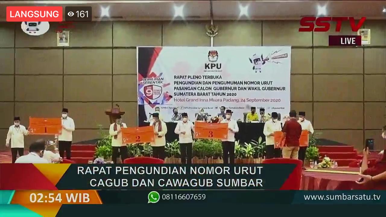 JURNAL SUMBAR | Padang – KPU Sumatera Barat menyelesaikan satu tahapan pelaksanaan Pilkada Serentak 2020, dengan melakukan pengundian dan pengumuman nomor urut pasangan calon, Kamis (23/9/2020).