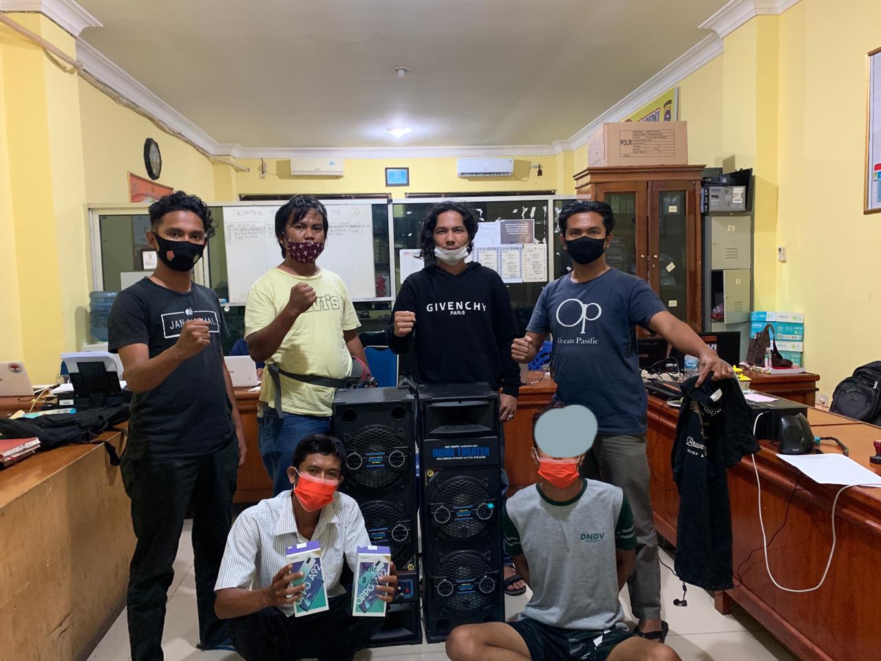 Selain pelaku, sejumlah barang bukti diduga hasil uang pencurian juga diamankan, yaitu uang sebanyak Rp.27.000.000,- (Dua puluh tujuh juta rupiah),1(satu) pasang Speaker Aktif merek Subwofwr warna hitam, 1(satu) unit Handphone merek Oppo A92 warna hitam beserta kotaknya, 1(satu) helai celana jeans panjang warna hitam cold smit, 1(satu) helai baju kaos warna hitam merek Animous dan 1(satu) handuk warna hijau.