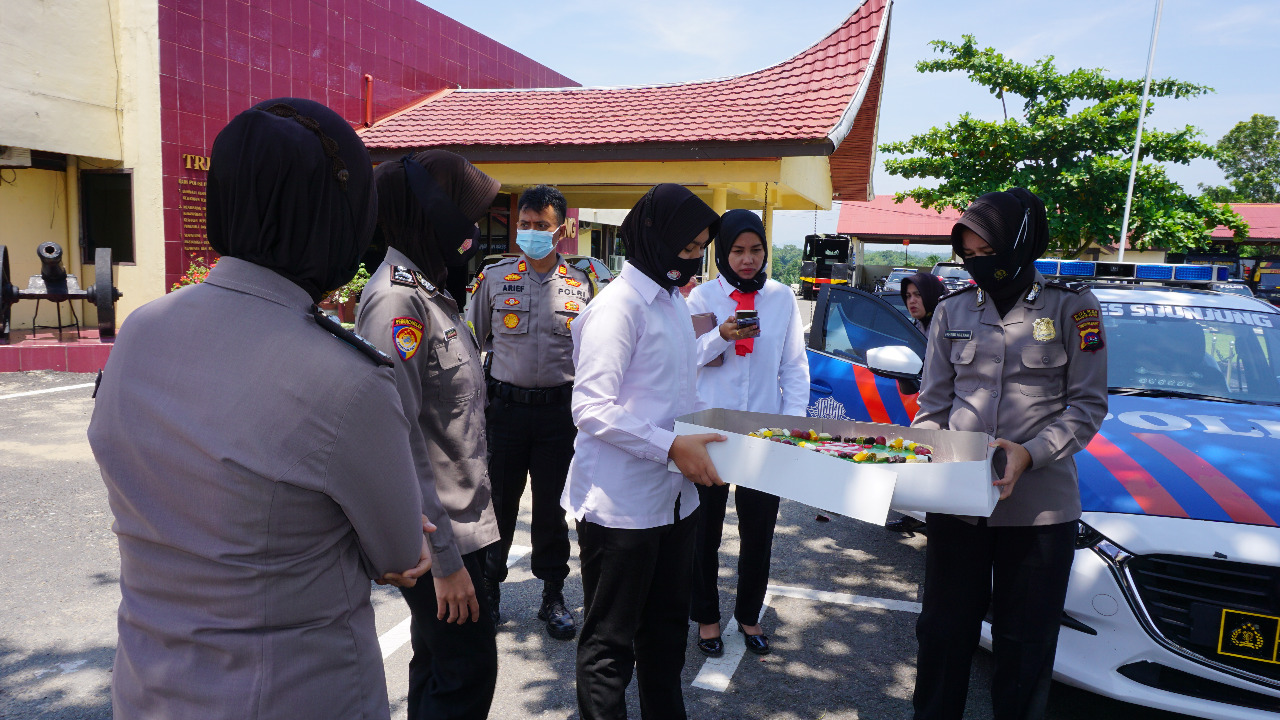 Kado kue ulang tahun dari Polres Sijunjung itupun diterima Dandim Letkol Infantri Endik Hendra Sandi. Dengan bangga Dandim didampingi Kasdim Mayor Ifantri Heronimus,S itu menyambut kehadiran para polisi fan Polwan itu.