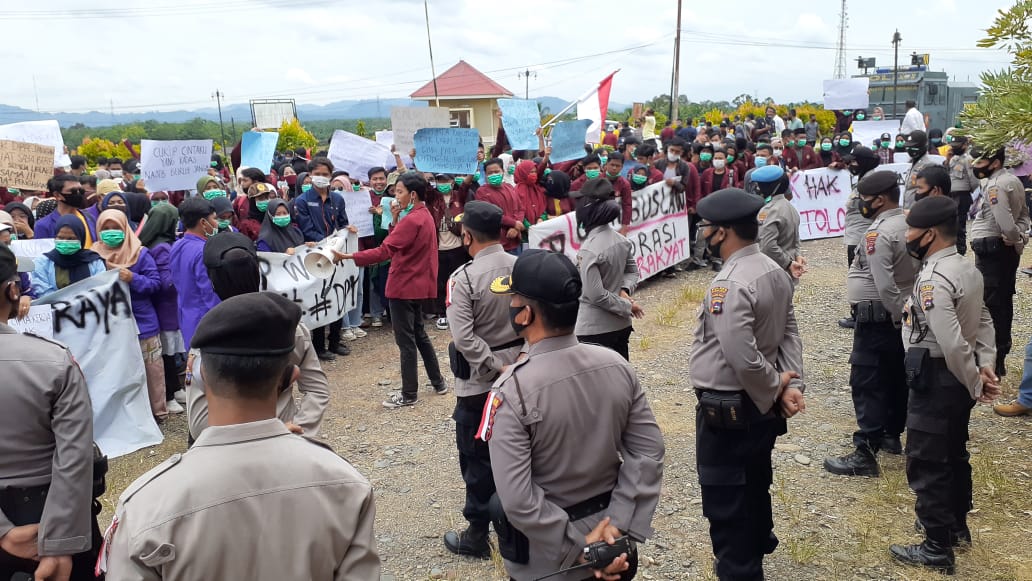 Aksi damai yang dipusatkan di halaman Gedung Dewan Perwakilan Rakyat Daerah (DPRD) setempat, berlangsung tertib dibawah pengawasan ketat petugas gabungan dari TNI/Polri dan petugas Satpol-PP.