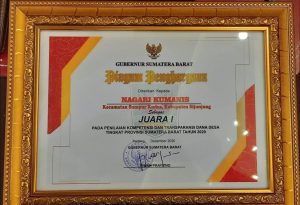 ” Alhamdulilah Nagari Kumanis berhasil meraih juara pertama dalam penilaian kompetensi dan transparansi dana desa tahun 2020. Penyerahan piagam dan tropy diserah kan langsung oleh Gubernur Sumatera Barat yang dalam hal ini diwakili oleh Asisten I bidang pemerintahan Bapak Devi Kurnia. Penilaian Lomba Kompetensi dan transparansi Dana desa yang dilakukan pada tanggal 25 November 2020 oleh Tim Penilai dari Provinsi Sumatera Barat. Dalam kesempatan tersebut Tim penilai kompetensi dan transparansi Dana desa memberikan apresiasi positif terhadap Nagari Kumanis yang menggunakan dana desa tidak hanya untuk fisik, tapi juga untuk peningkatan pemberdayaan masyarakat dan terutama untuk peningkatan pendapatan asli Nagari (PAN) melalui badan usaha Nagari (Bumnag),”papar Kadis PMN Sijunjung, Khamsiardi,S.STP,MSi pada Jurnalsumbar.com Selasa (22/12/2020).