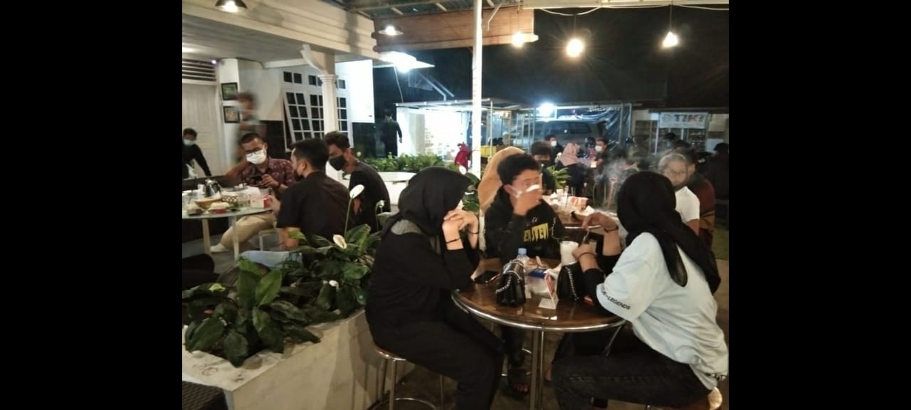Para pengunjung cafe masih mengabaikan Protokol Kesehatan (Prokes) dengan tidak memasang spanduk himbauan, pengunjung wajib memakai masker dan masih ditemukan pengunjung cafe berkerumun, serta tidak menjaga jarak.