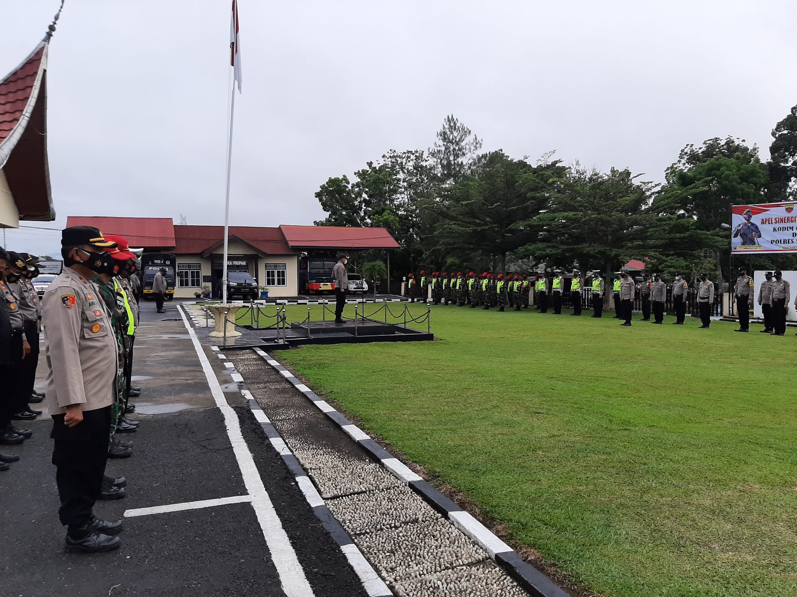 JURNAL SUMBAR | Sijunjung – Kapolres Sijunjung, Sumatera Barat, AKBP Andry Kurniawan, S.IK, MH, pimpin apel signeritas TNI-Polri (Kodim 0310/SSD dan Polres Sijunjung) pada Kamis (27/5/2021) halaman Mapolres setempat.