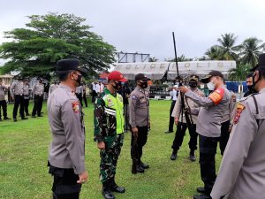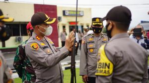 Dalam amanatnya, kapolres menekankan agar TNI-Polri menyampaikan tentang perlunya menjaga protokol kesehatan (Prokes). Bahkan kata kapolres, petugas harus tegak penindakan yustisi.