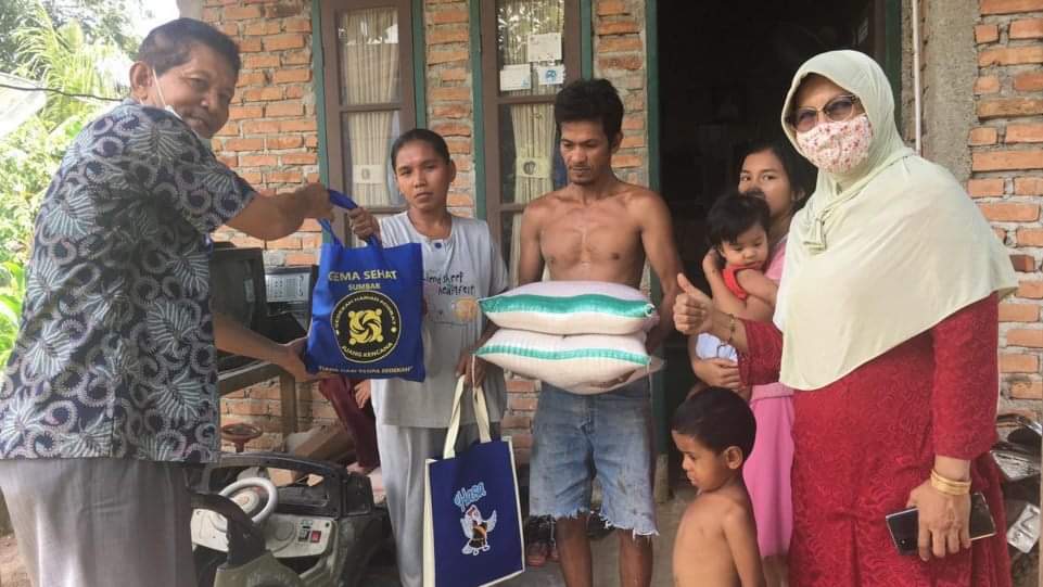 Pada kegiatan sosial tersebut, Gema Sehat Juken BKKBN Sumbar menyerahkan paket sembako senilai Rp.500.000,- dalam bentuk beras, telur, dan bahan pokok lainnya kepada 20 kepala keluarga.