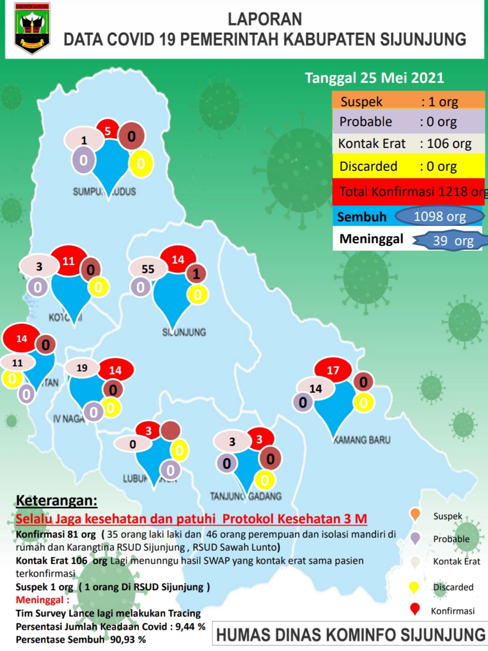 Hal itu disampaikan Kepala Dinas Kominfo Sijunjung, Sumatera Barat, selaku Juru Bicara Penanggulangan Penanganan Covid-19, Rizal Effendi kepada Jurnalsumbar.Com via Whatsappnya, Selasa (25/5/2021) sore.