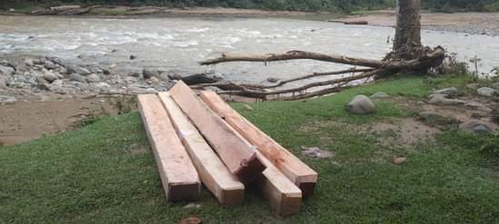 Kepala Pengamanan Hutan Berbasis Nagari ( PHBN) Sako Tapan Rahmadi chan didampingi anggota PHBN Japardin ketika dihubungi wartawan membenarkan temuan kayu tidak bertuan di pinggir sungai Batang Panadah Tapan, Nagari Limau Parut Tapan, Kecamatan Ranah Ampek Hulu Tapan.