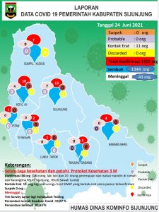 JURNAL SUMBAR | Sijunjung – Kabar terbaru, pada Kamis (24/6/2021-red) ini, sebanyak 27 orang warga di Kabupaten Sijunjung, Sumatera Bara, sembuh dari Covid-1. Dengan demikian, total warga sembuh mencapai 1.344 orang.