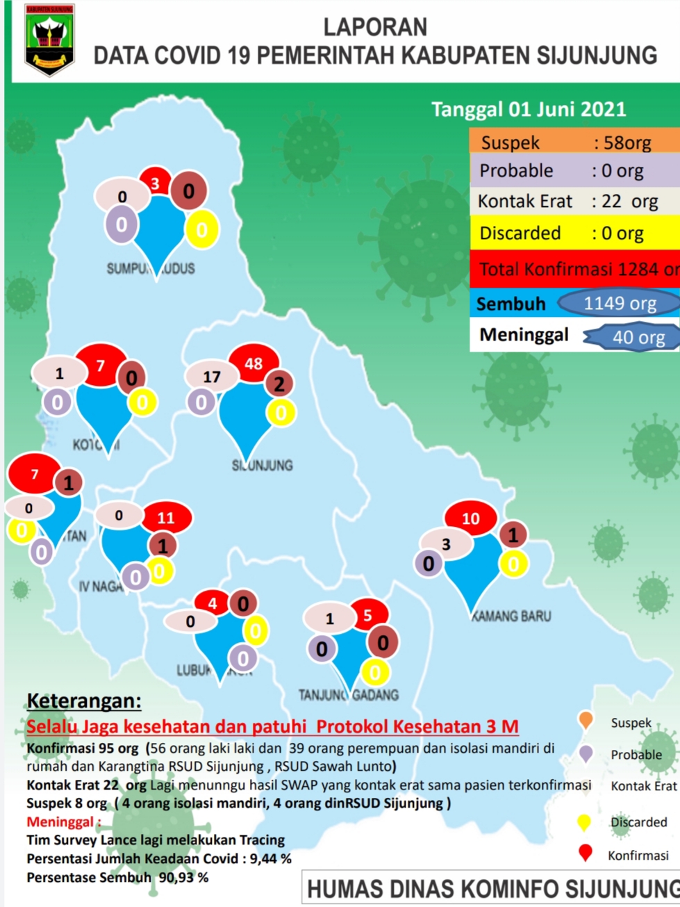 Hal itu disampaikan Kepala Dinas Kominfo Sijunjung, Sumatera Barat, selaku Juru Bicara Penanggulangan Penanganan Covid-19, Rizal Effendi, kepada Jurnalsumbar.Com via whatsappnya, Selasa (1/6/2021) siang.